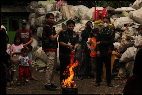 menyemprotkan APAR ke bagian yang mengalami kebakaran. Kemudian Alfiri memberikan kesempatan kepada warga Kampung Pemulung untuk mempraktikannya secara mandiri tetapi dalam pengawasan.